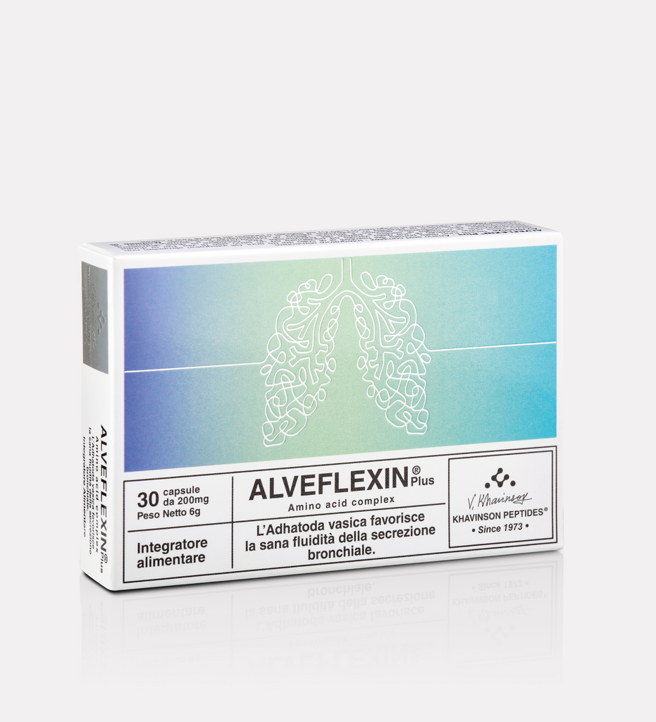 ALVEFLEXIN®Plus – is a dietary supplement with two bioregulators, which normalizes the functional activity of bronchi cells by normalizing protein synthesis inside the cells, thereby allowing for increased functionality and a longer lifespan of the lungs as a whole organ.