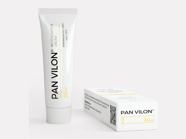 VILON® and KED peptides act as cellular messengers, helping skin cells regenerate faster and form healthy tissue. Combined with sea buckthorn oil and glycerin, PANVILON® deeply hydrates, strengthens the skin barrier, and prevents scarring — blending modern peptide science with natural restoration.